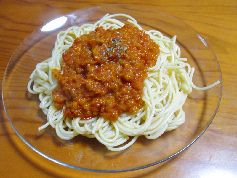 ↑トマトソースのスパゲッティ。うまー。うまー。