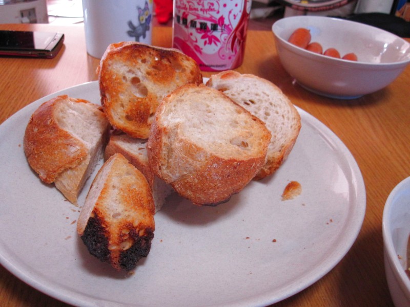 ↑RINさん提供のおいしいパンを切ってトースト。うまうま。