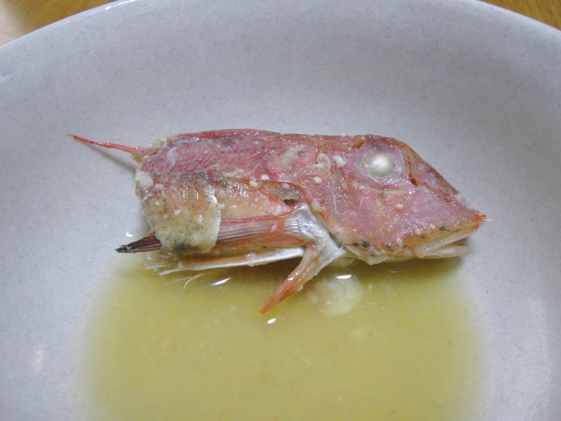 ↑あんこうのお腹の中に、別のお魚がいたらしい。赤いしっぽ。