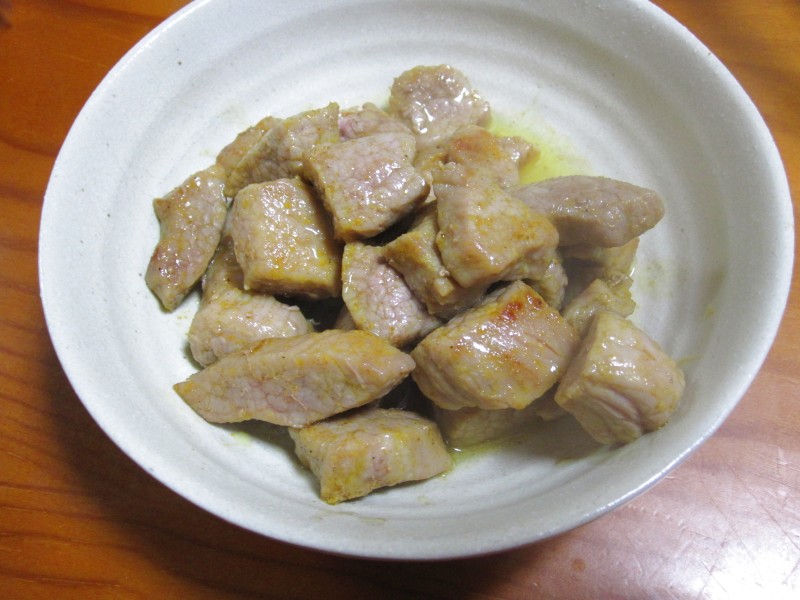 ↑豚肉を焼いたやつ。カレー風味。うまうま。