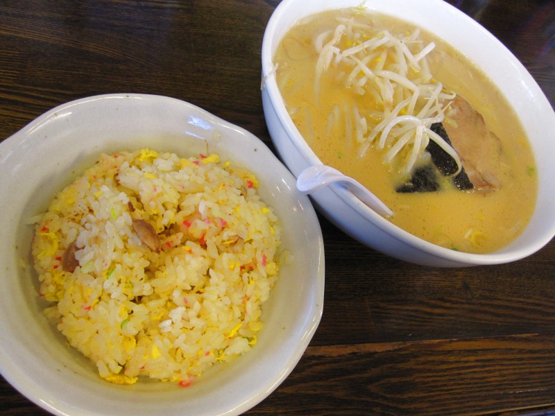 ↑夫の人は、ミニチャーハンと豚骨ラーメンのセット。