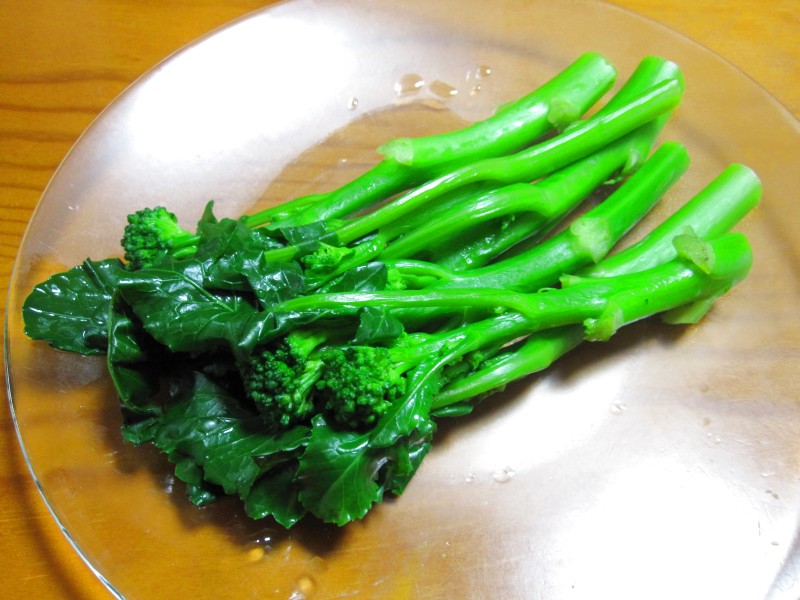 ↑初めて食べる、茎ブロッコリー。ゆがいてシャクシャク。