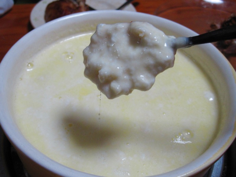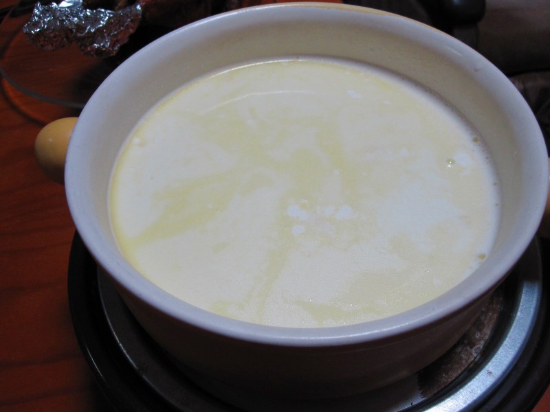 ↑我が家のクリスマスの定番、チーズフォンデュ。あたため中。