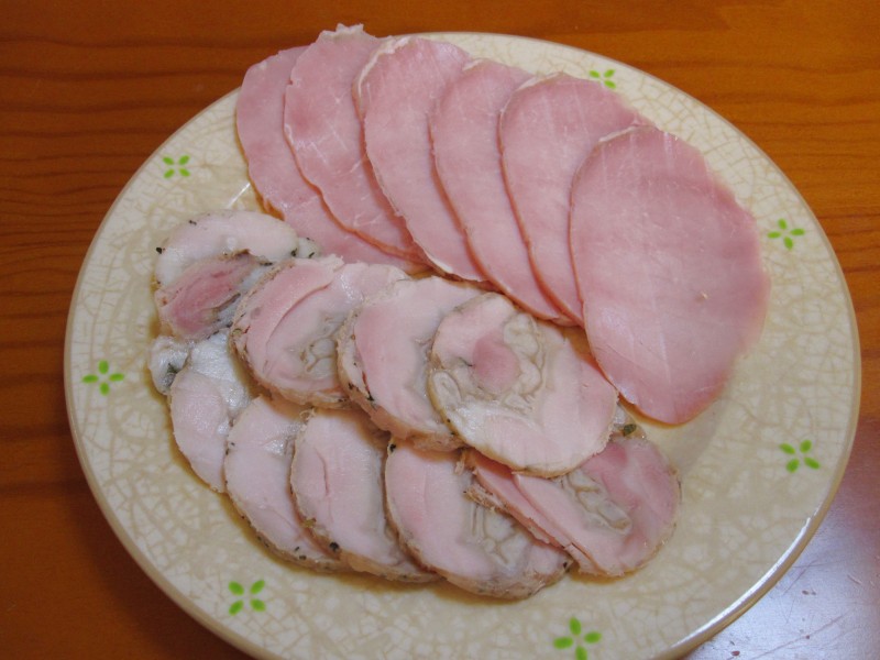 奥のキレイな楕円のは、塊で買った、ちょっとお高いハム。うまうま。