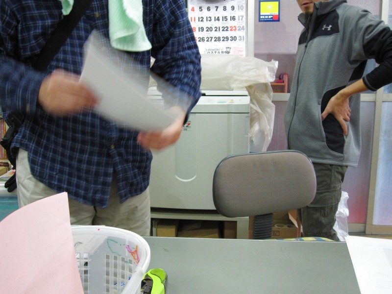 そして、ごみやんの職場で、印刷機を借りる。