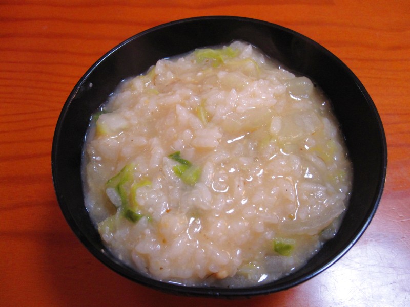 ↑ブランチ。白菜入り雑炊。味噌味。