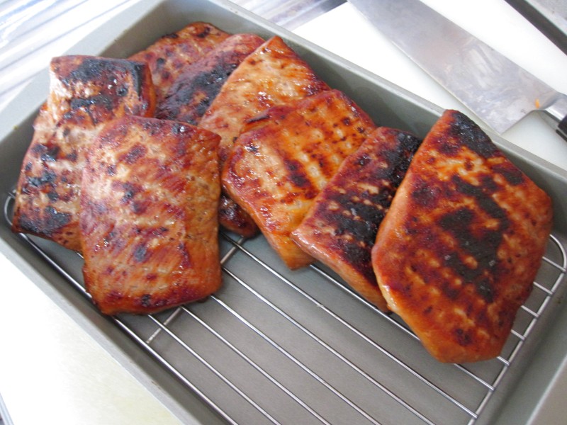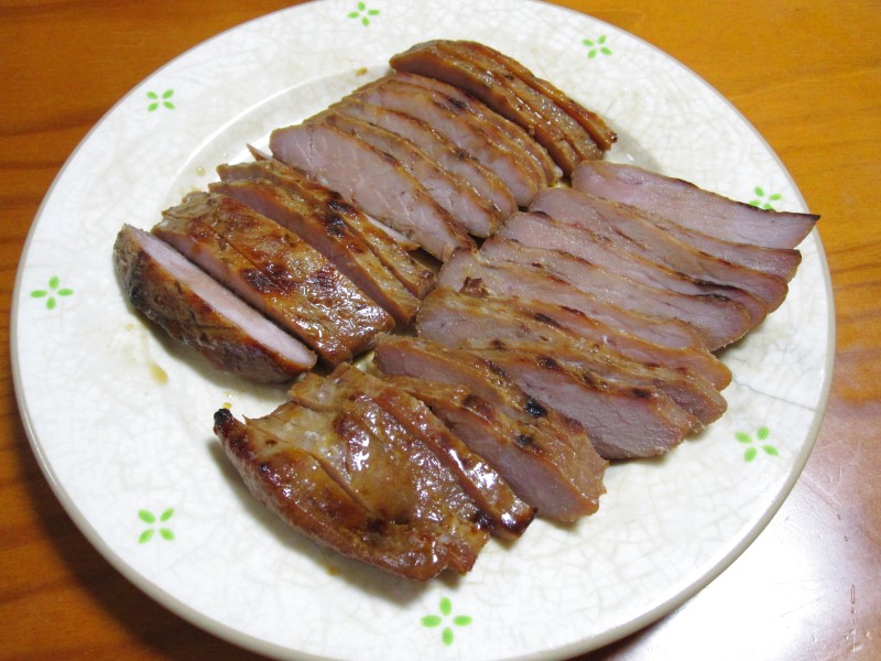 ↑焼き豚。夫の人が、魚焼きグリルでじっくり焼いたもの。