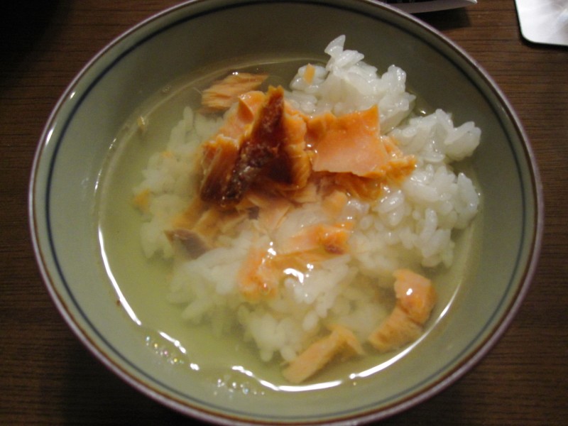 ↑おいしい鮭をほぐしてのせて、お茶漬け。うまうま。