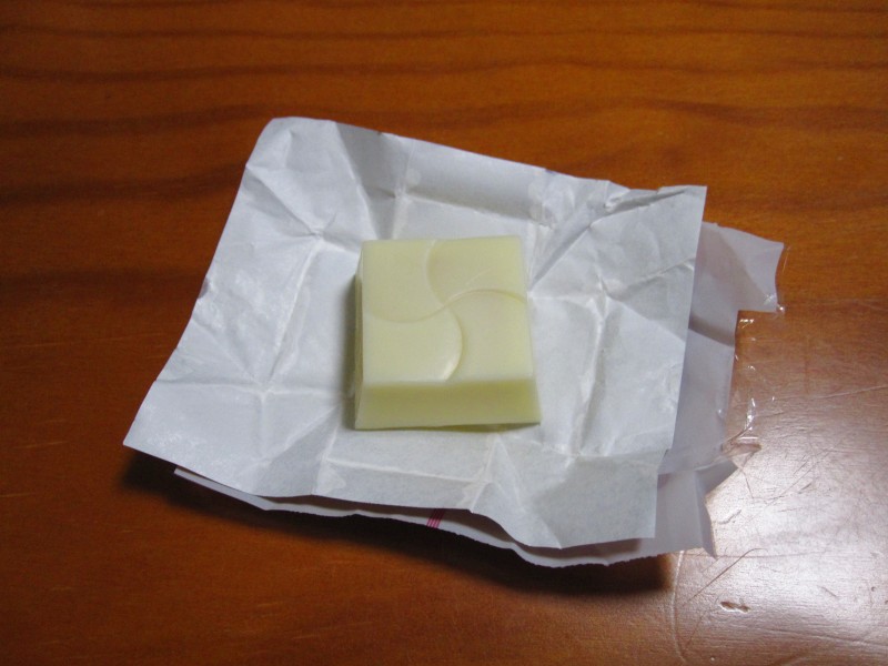 ホワイトチョコがベースで、中に餅っぽいものが入っていた。