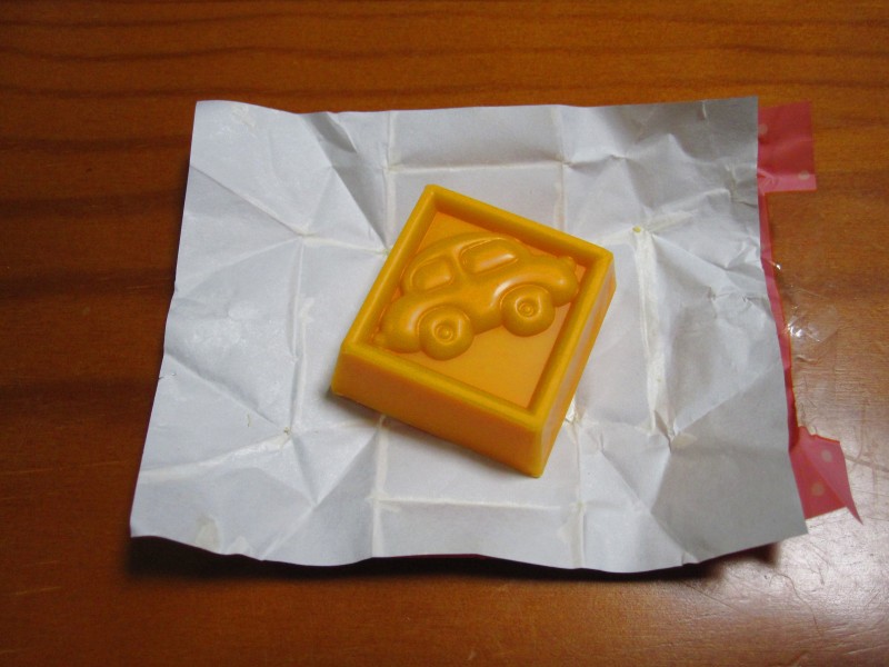 ↑みかんのチロルを開けたら、なぜか車の柄。