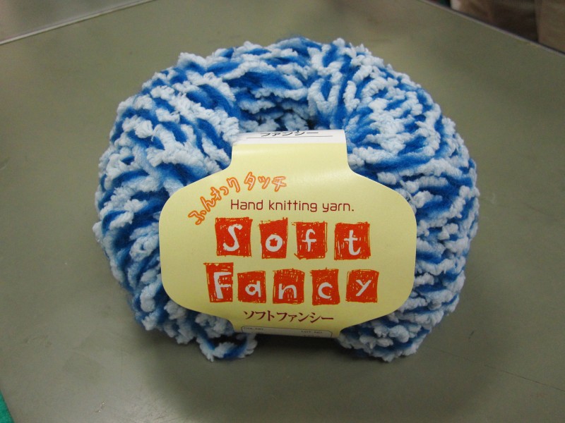 ↑青いモヘアっぽい糸2本と、白いふわふわの糸と、3本撚り。