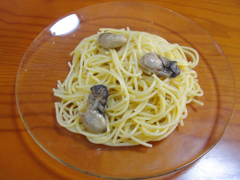 ゆでたパスタに、牡蠣を漬けていたオイルを混ぜただけ。