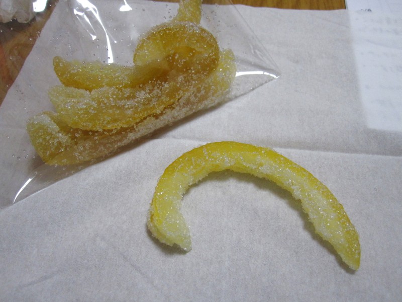 ↑お義母さんが作って持たせてくれた、謎の柑橘の皮の砂糖漬け。