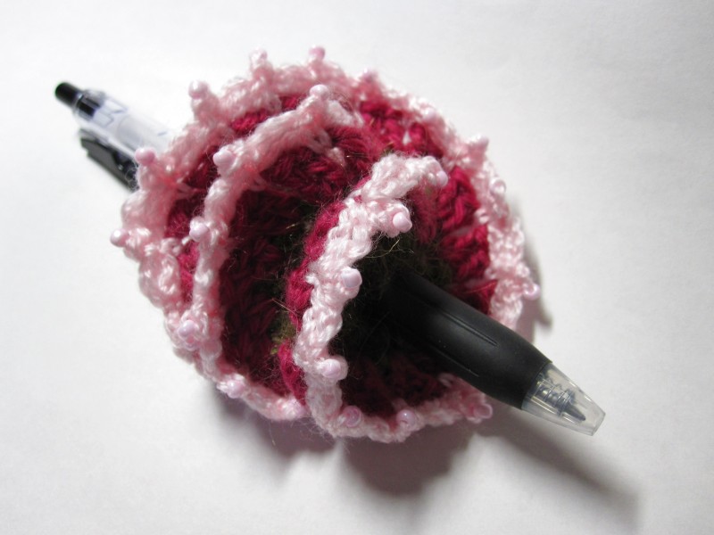 ↑昨日の水色シュシュも、ボールペンに巻いてみた。