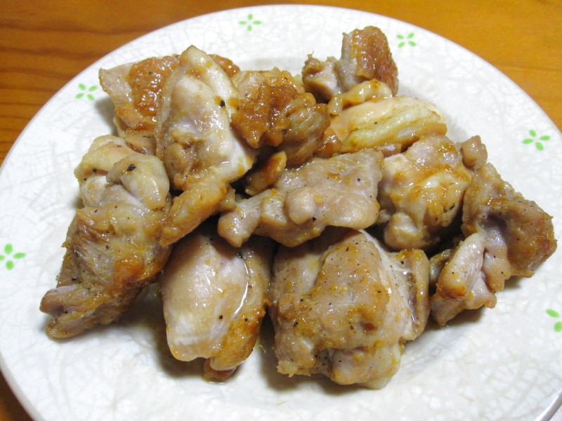 ↑ニンニク醤油系のこってり味で焼いた鶏肉。