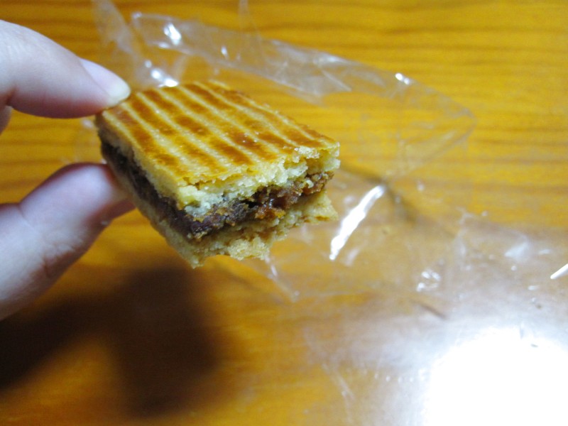 ナッツが入ったキャラメルを、クッキー生地で挟んで焼いた感じ。