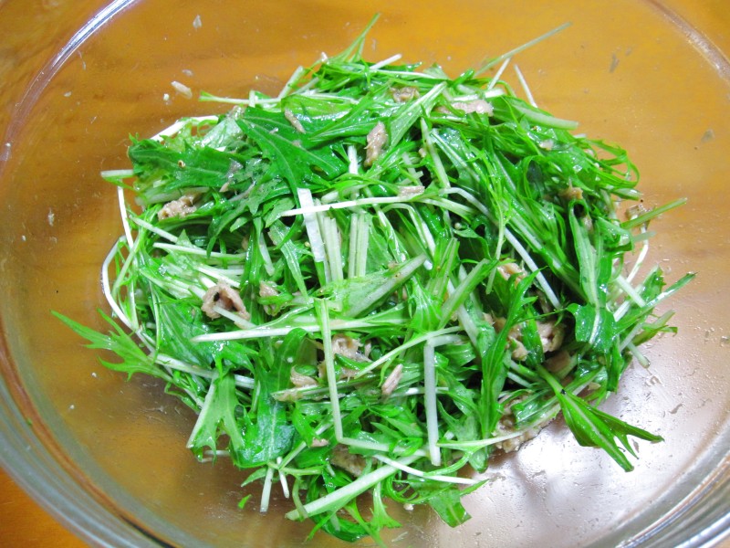 ↑水菜ツナ柚子ポンサラダ。