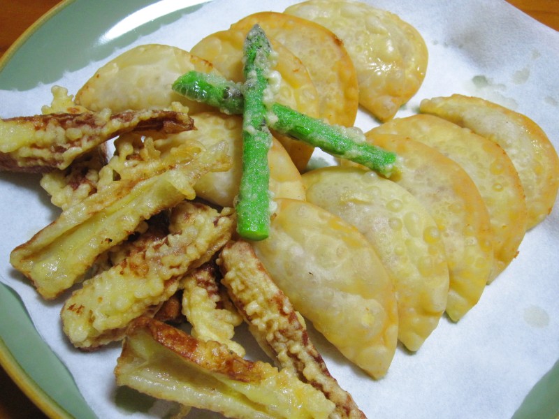 天ぷらの衣が、ほんの少し残ったので、アスパラに薄くからめて。