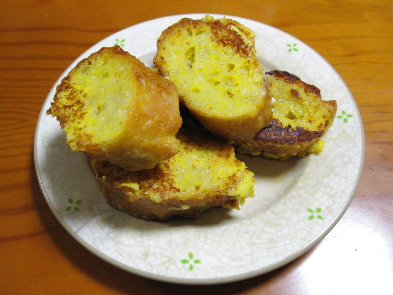 あまーい玉子液にひたして、やわらかくなったパンが超うまい。