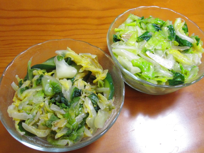 手前は、柚子ポンで味付けした、いつもの感じの浅漬け。