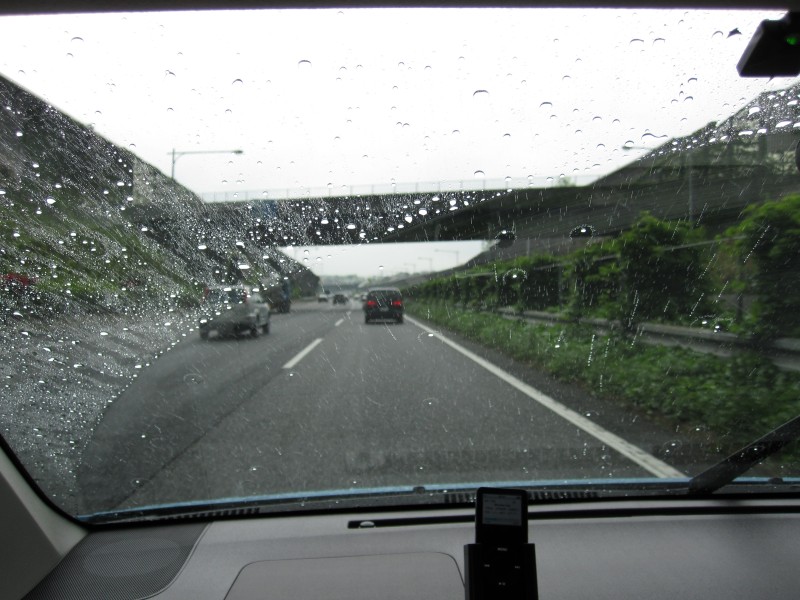 ↑東名にのったら、厚木の辺りから雨が降り出した。