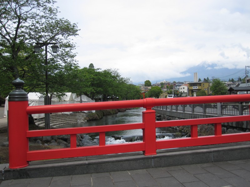 浅間大社を出てすぐの辺りで、雲の隙間から富士山が少しだけ見えた。