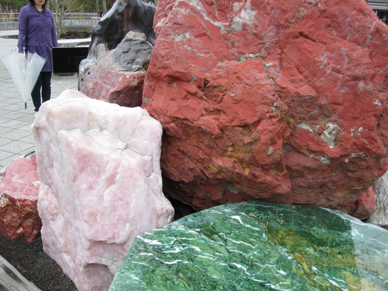 アメジストドームとか、水晶の塊の彫刻とか、展示販売されていた。