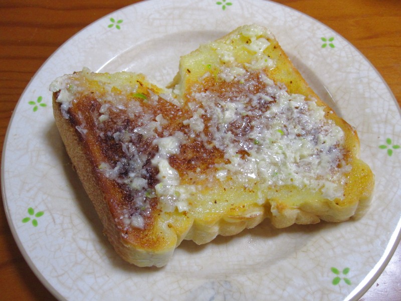 ガーリックバターが残ったので、トーストにものせて食べた。