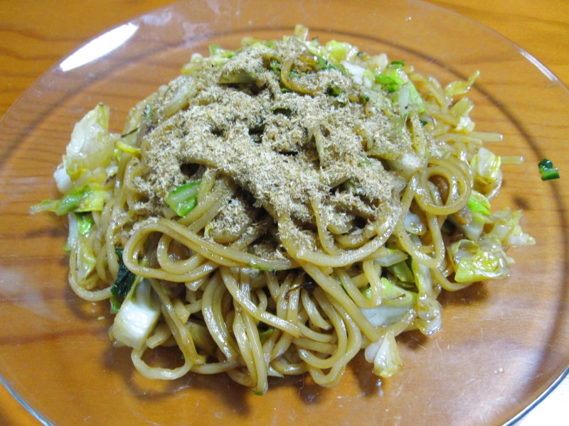 ↑夜ご飯。富士宮やきそば。現地のコンビニで買ってきたセット。