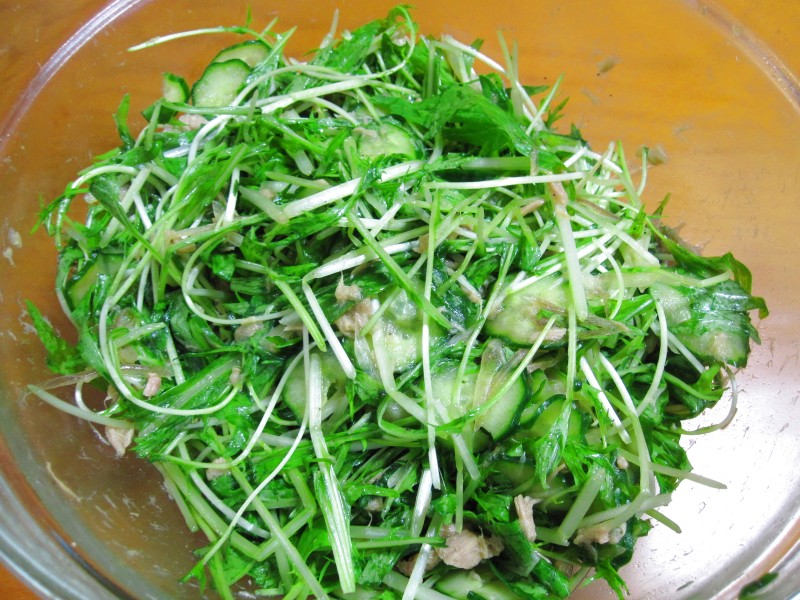 ↑水菜とキュウリのサラダ。
