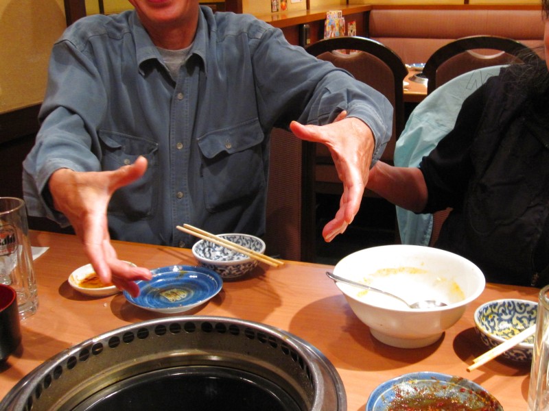 夫の人が帰ってきてから、みんなで自転車に乗って、焼き肉屋さんへ。
