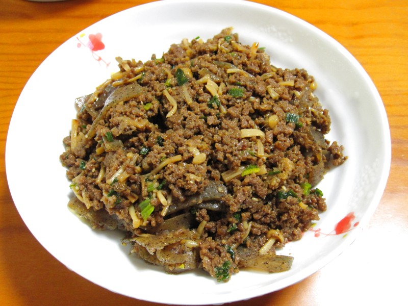 ↑こんにゃくそぼろ。昨日いっぱい作っておいたやつ。