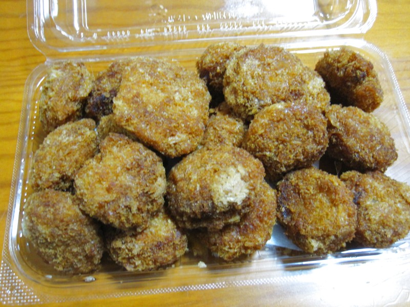 ↑一口メンチカツ。夫の人が帰りにスーパーで買ってきた。