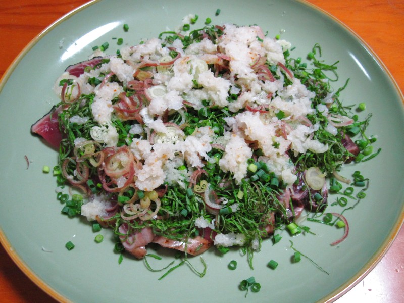 薬味好きだけど、このかつおに、この量の薬味はもったいない気がした。