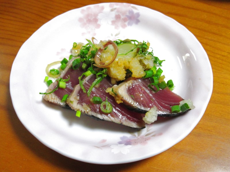 ↑夜ご飯。下からもらった、かつおのたたき。