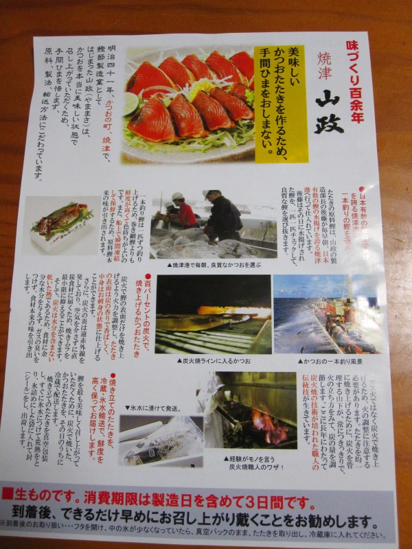 ↑かつおのたたきのパンフ。