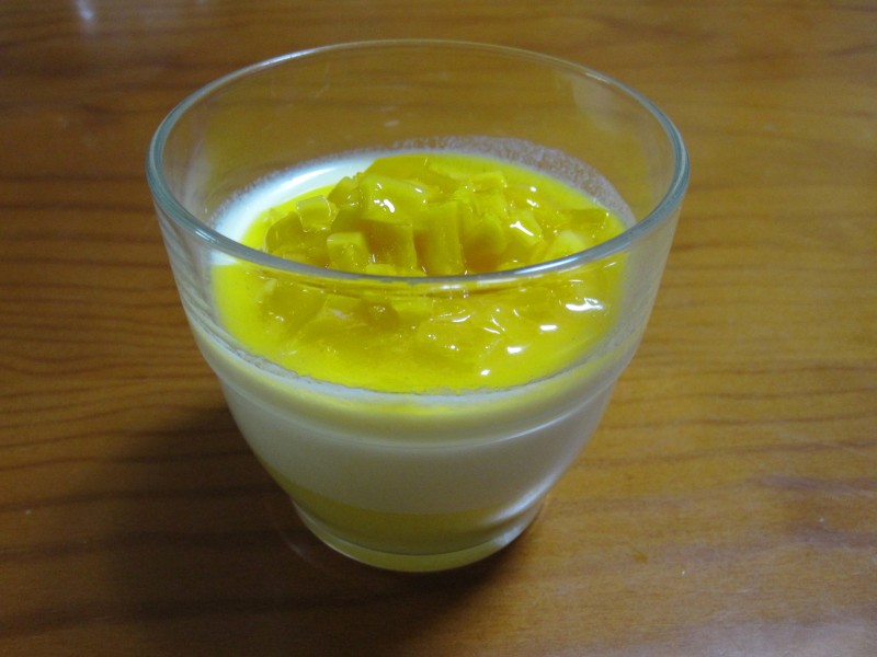 生クリームが残っていたので、オレンジジュースと合わせてゼリーに。