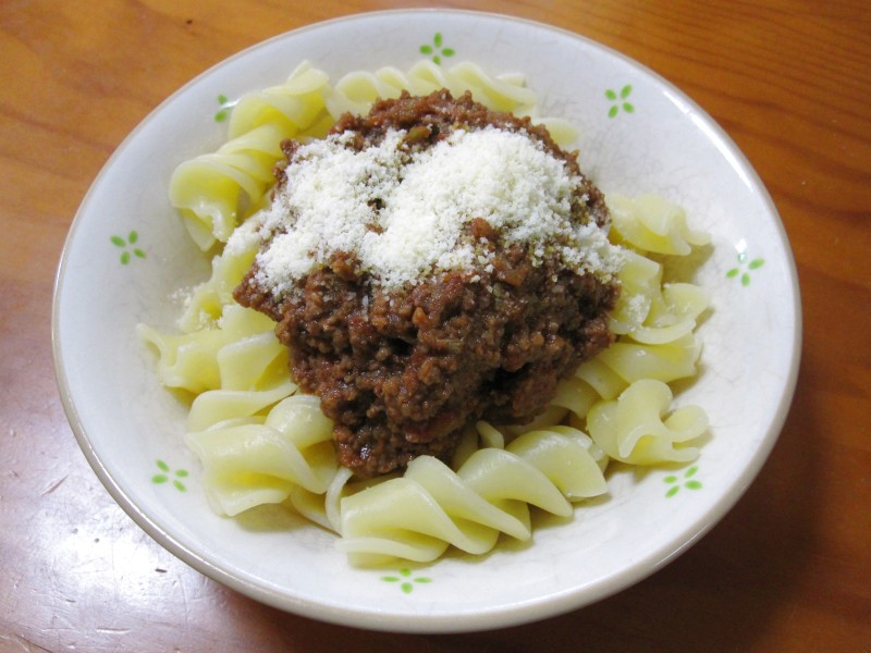 ミートソースは、夫の人が昨日の夜から密かに仕込んでいた。