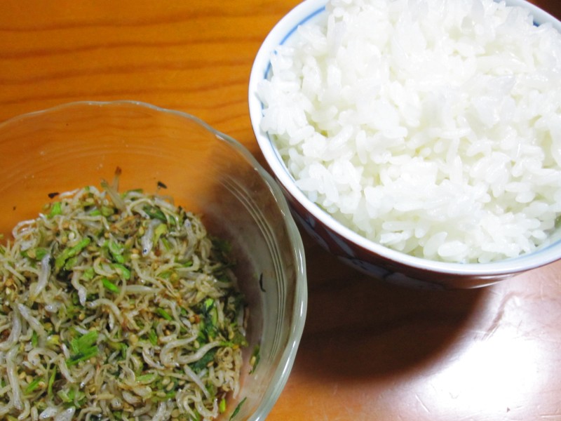 ↑夜ご飯。しらすふりかけ・ご飯。