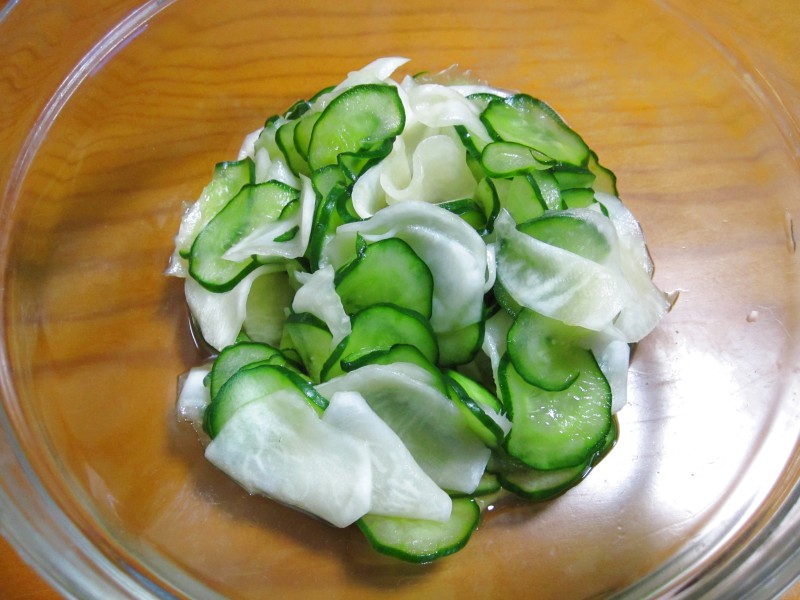 ↑キュウリとカブの浅漬け。