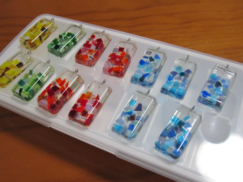 中に入れたガラスの透け感は、やっぱりレジンと相性いいと思う。