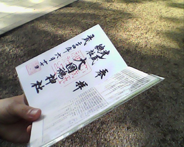 神社の名前とか年月日とか、墨で手書きなの。かっこいい。