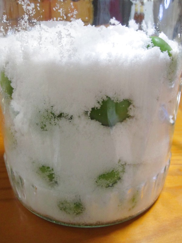 漬けて2日間ほどは、ちょっと砂糖が湿ってきたかな?という程度で。