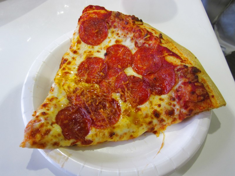 ホットドックを一口もらって、ピザがでかいので手伝ってもらって。