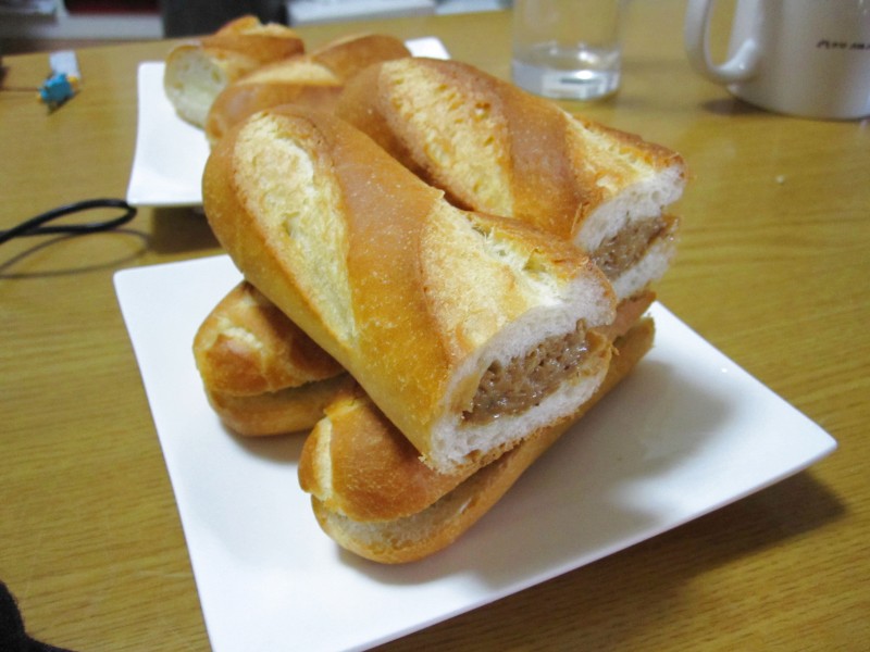 ↑細いフランスパンに、クリームをはさんだやつ。