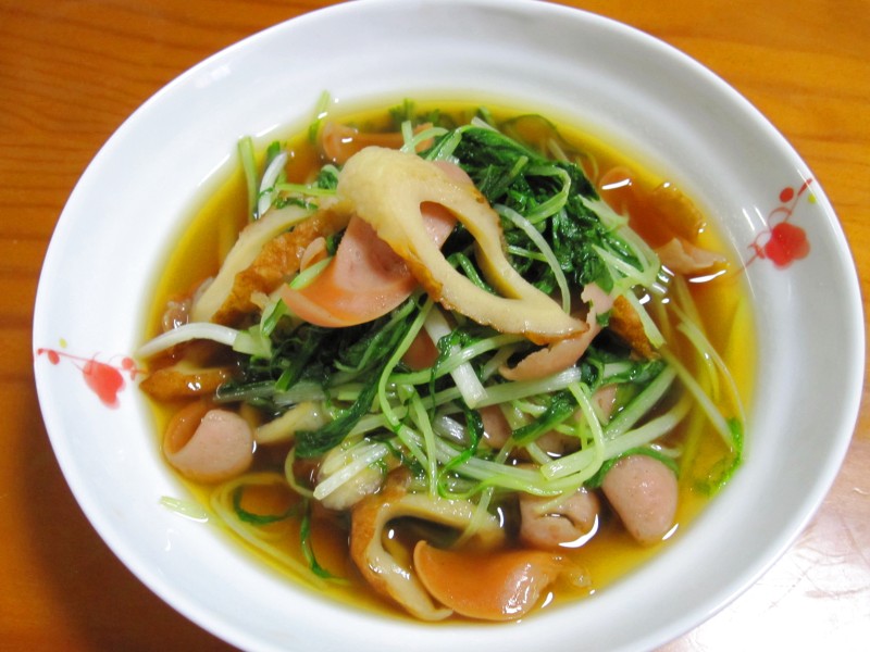 ↑水菜・ウインナー・ちくわの煮物。