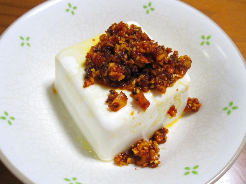 ↑冷奴。RINさんの食べるラー油のせ。
