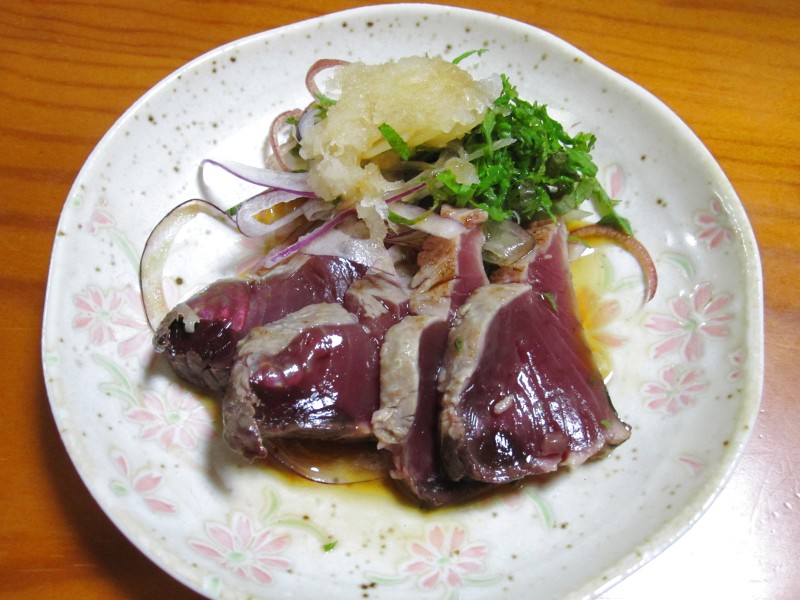 ↑下からもらった、カツオのたたき。
