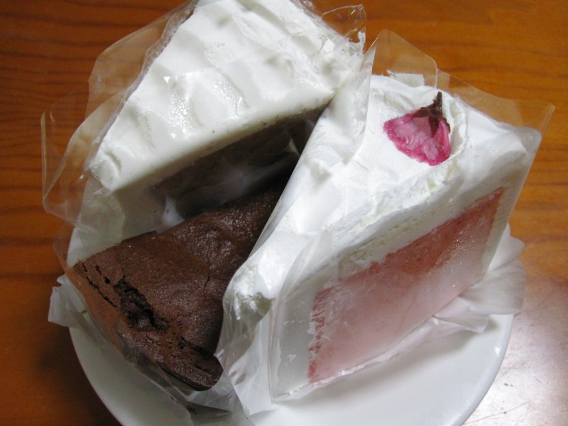奥から、紅茶シフォン・チョコケーキ・桜シフォン。
