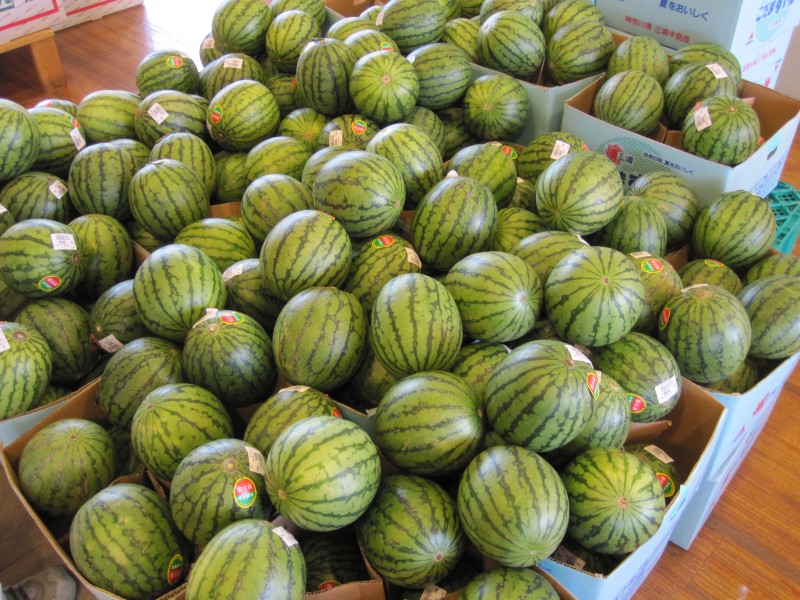↑小玉スイカ、山盛りだった。1個買ったよ~。